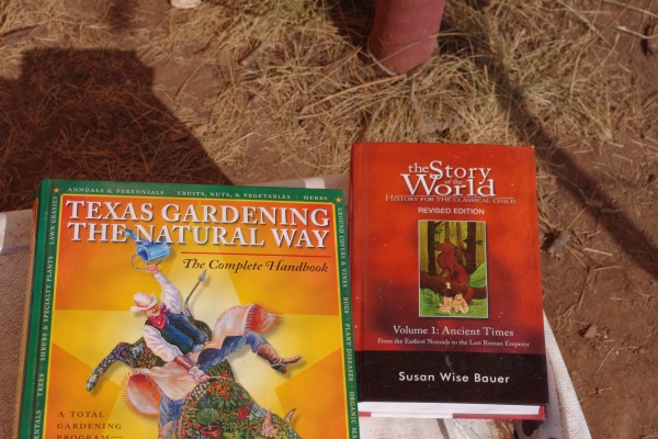 Besides plotting the (very tasty and nutritious) demise of said rooster, we have been reading when we can spare a minute. I am planning the fall garden during independent school time. We’re also reading through this history book which is a fan favorite around here in the six and under crowd.