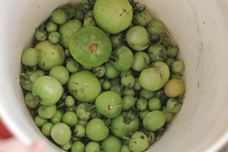 There was also a bucket full of green tomatoes that never quite ripened. So we made a version of green tomato salsa verde and canned it up and some fermented green tomatoes as well.